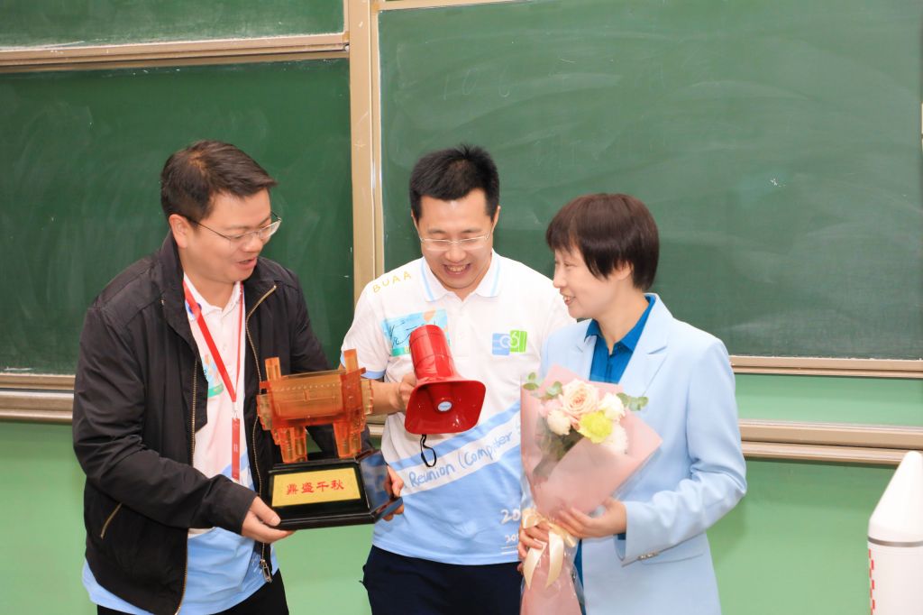 10月6日,taptap竞彩足球迎来了2001级100多名校友重返母校。校友们从五湖四海相聚北航,畅谈过去未来、合影留念。学院党委书记王蕴红老师向校友们表示热烈地欢迎,感谢校友们长期以来对母校的关心和支持,并着重为校友们介绍了学校、学院近年来的发展和变化。学院为校友们精心准备了返校纪念品和餐券,校友代表们也向学院赠送了纪念品。