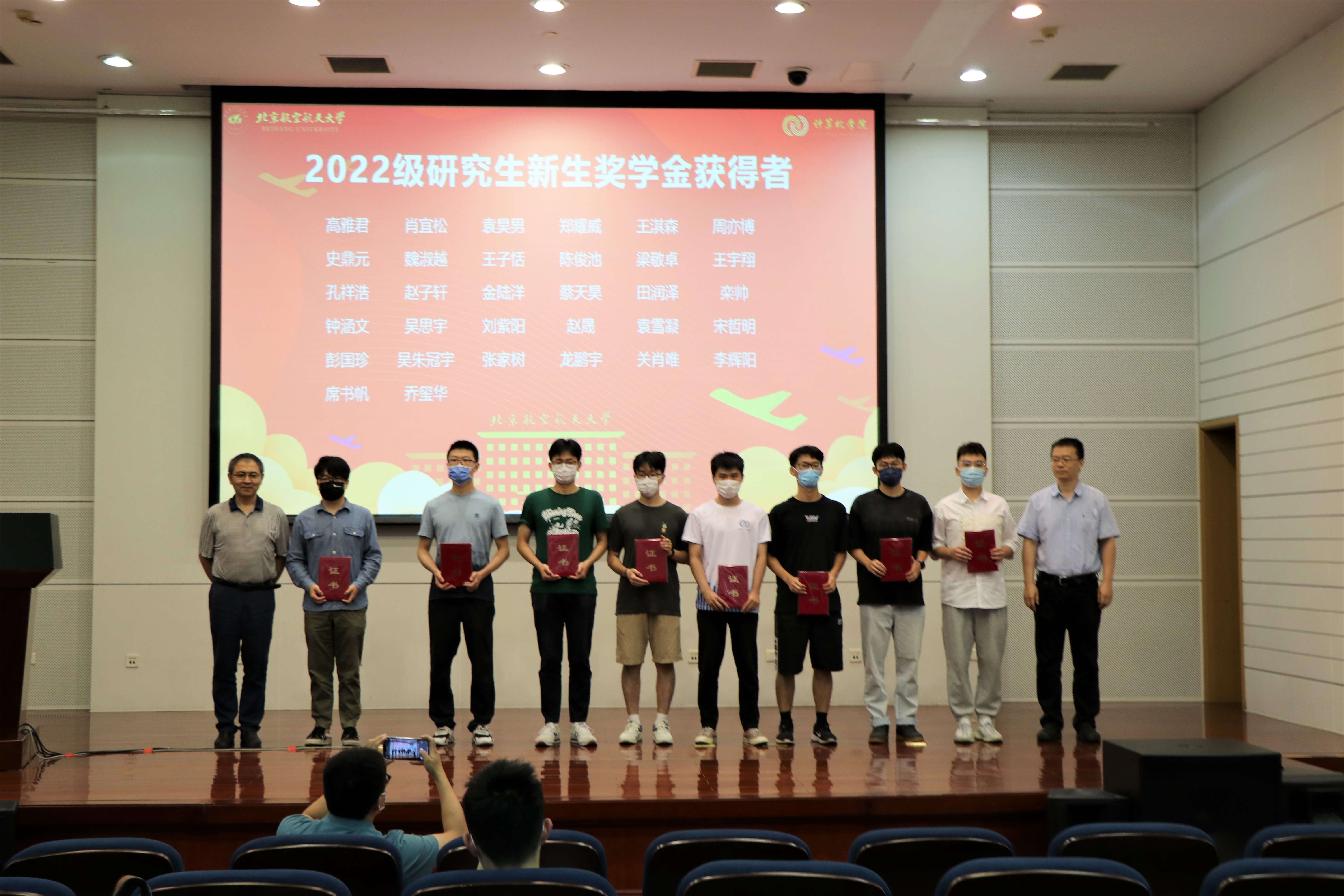 庄严的国歌声拉开了开学典礼的帷幕。李建欣书记宣读了获得研究生新生奖学金的学生名单,对获奖同学表示祝贺,并和梁晓辉副院长、教师代表一起为获奖学生荣誉颁发证书。